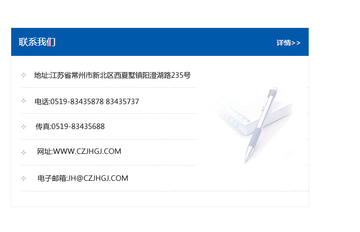 地址:常州市新北區友邦商務大廈1幢16、17層  電話:0519-85101652  傳真:0519-85112595  郵編:213022  網址:www_cz-jiayue_cn.hfyhbg.com  郵箱:xiajifengaa@163.com